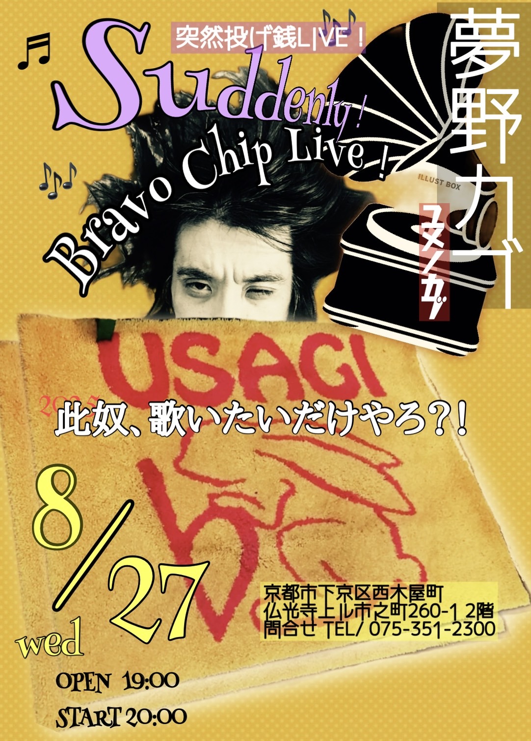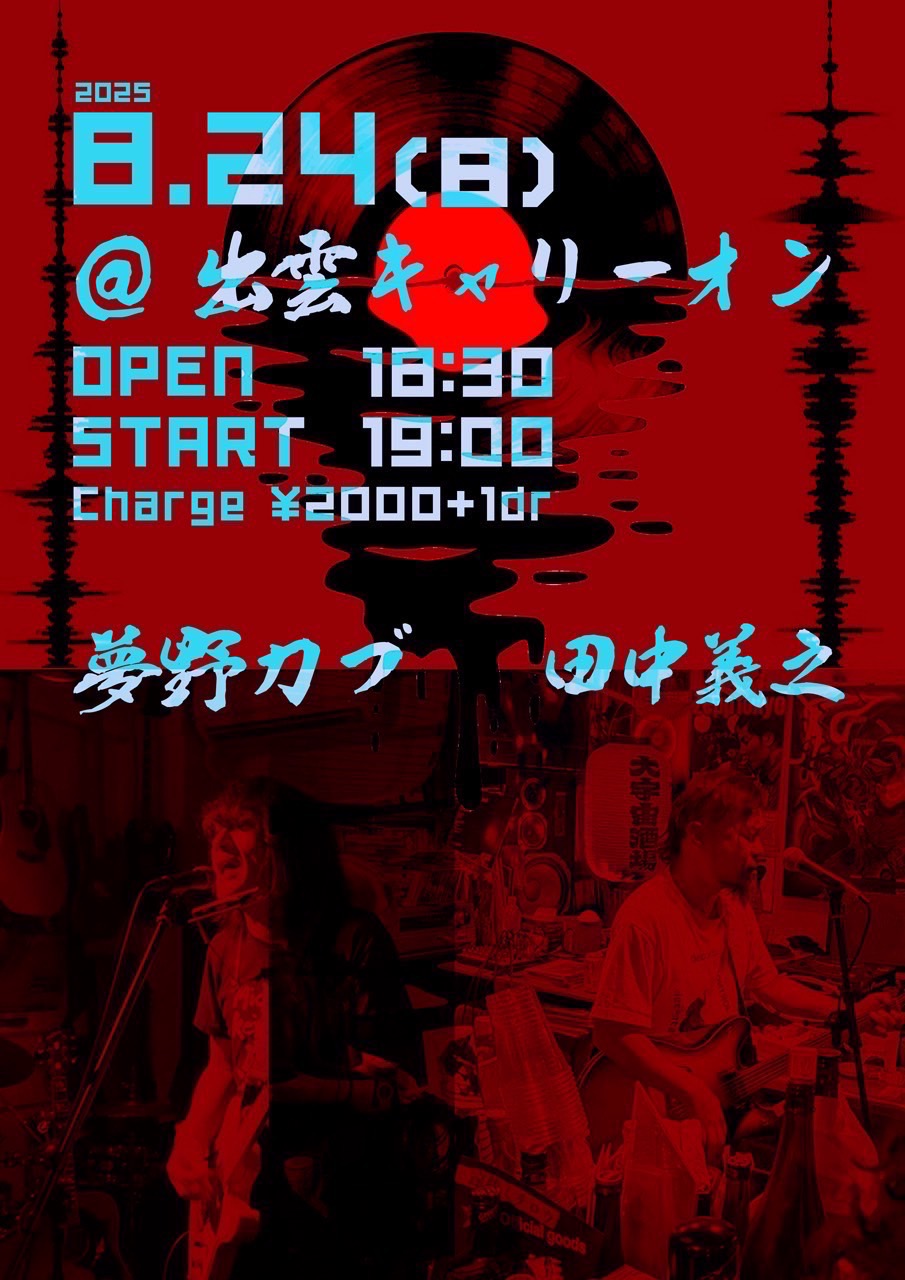 夢野カブ OPEN 19:00 START 20:00 チャージ:2,500円