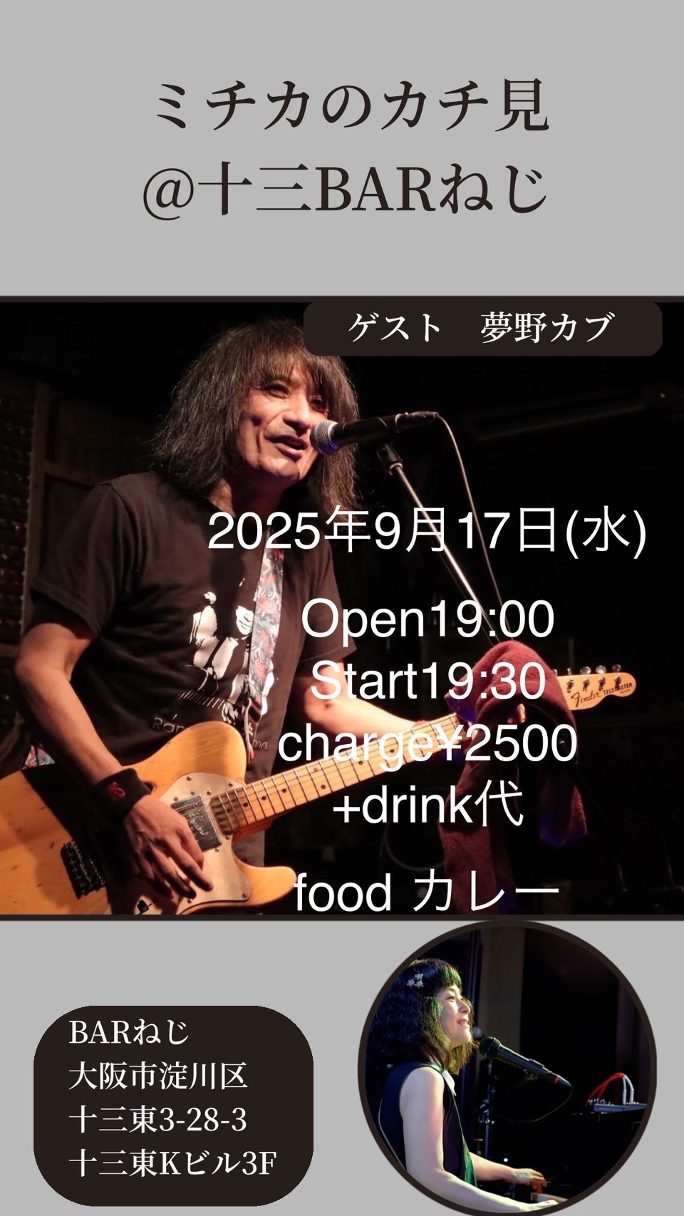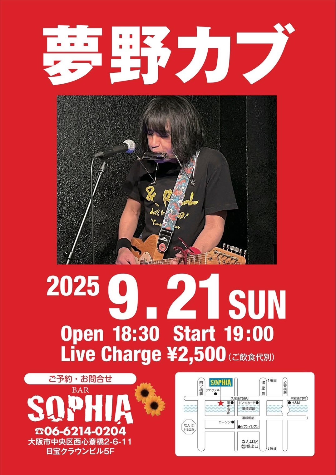夢野カブ 我流参 こんこば OPEN 17:30 START 18:00 チャージ:2,500円(1drink付)