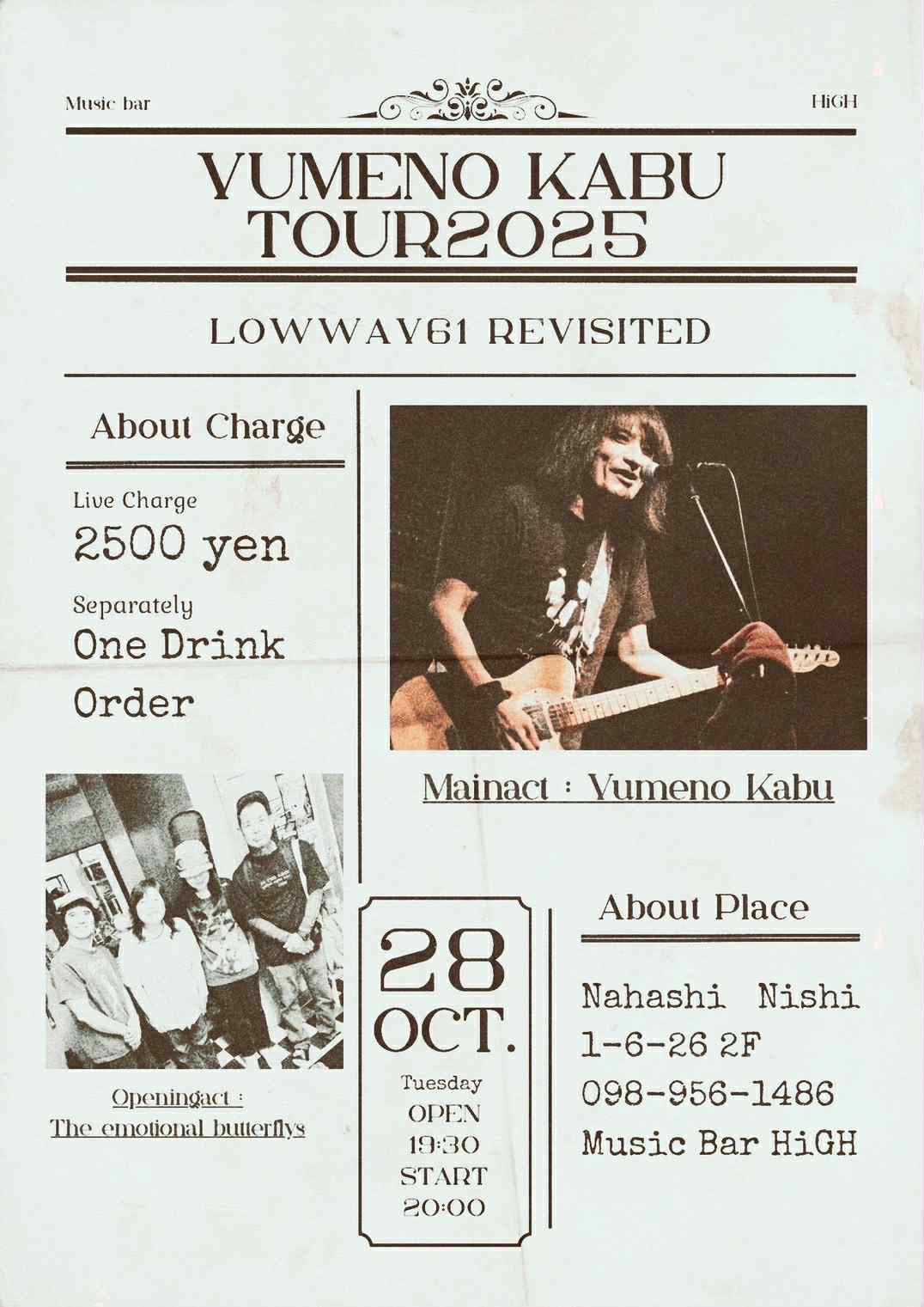夢野カブ O.A. The emotional butterflys OPEN 19:30 START 20:00 チャージ:2,500円 +1drink order