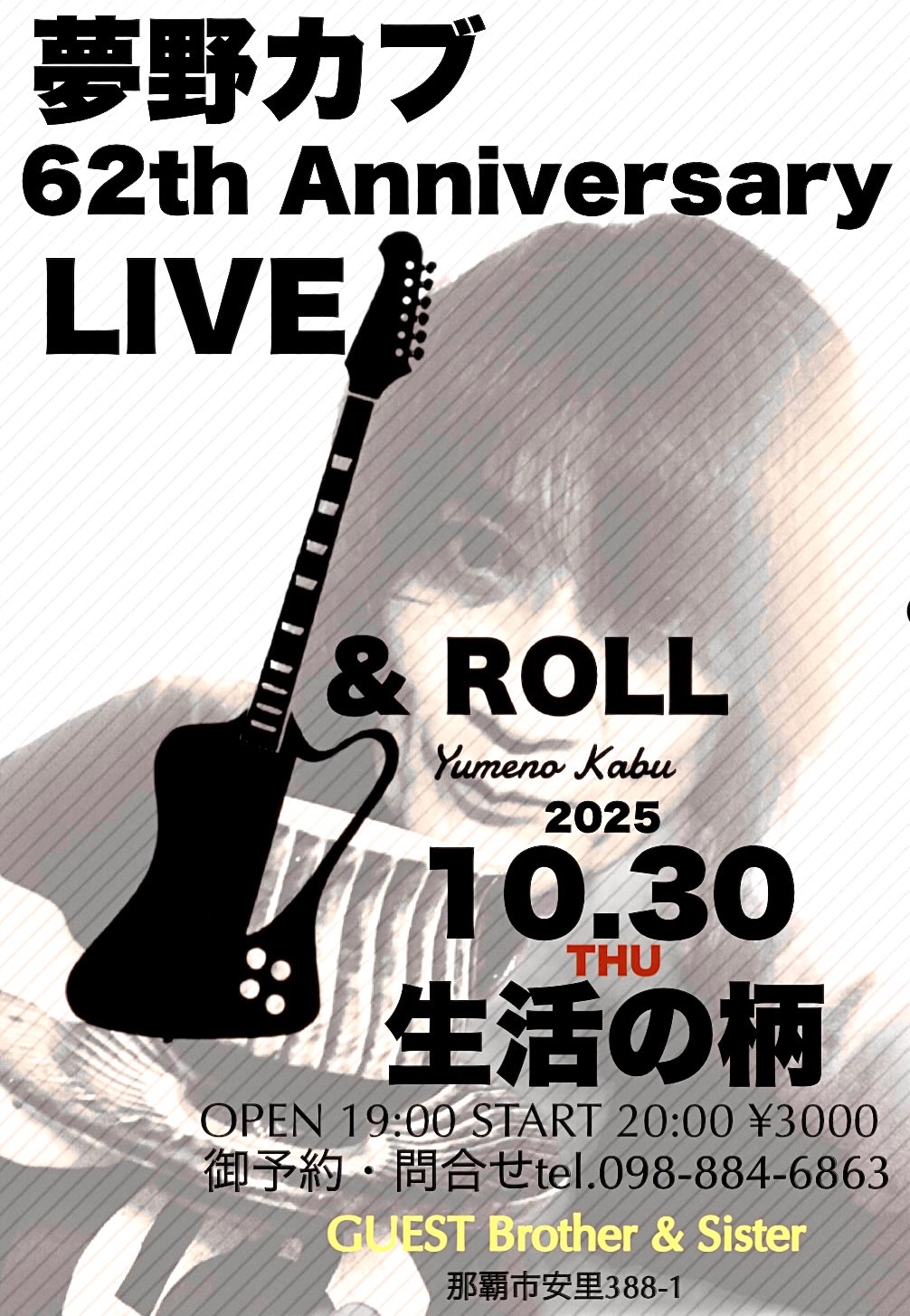 夢野カブ GUEST Brother & Sister OPEN 19:00 START 20:00 チャージ:3,000円
