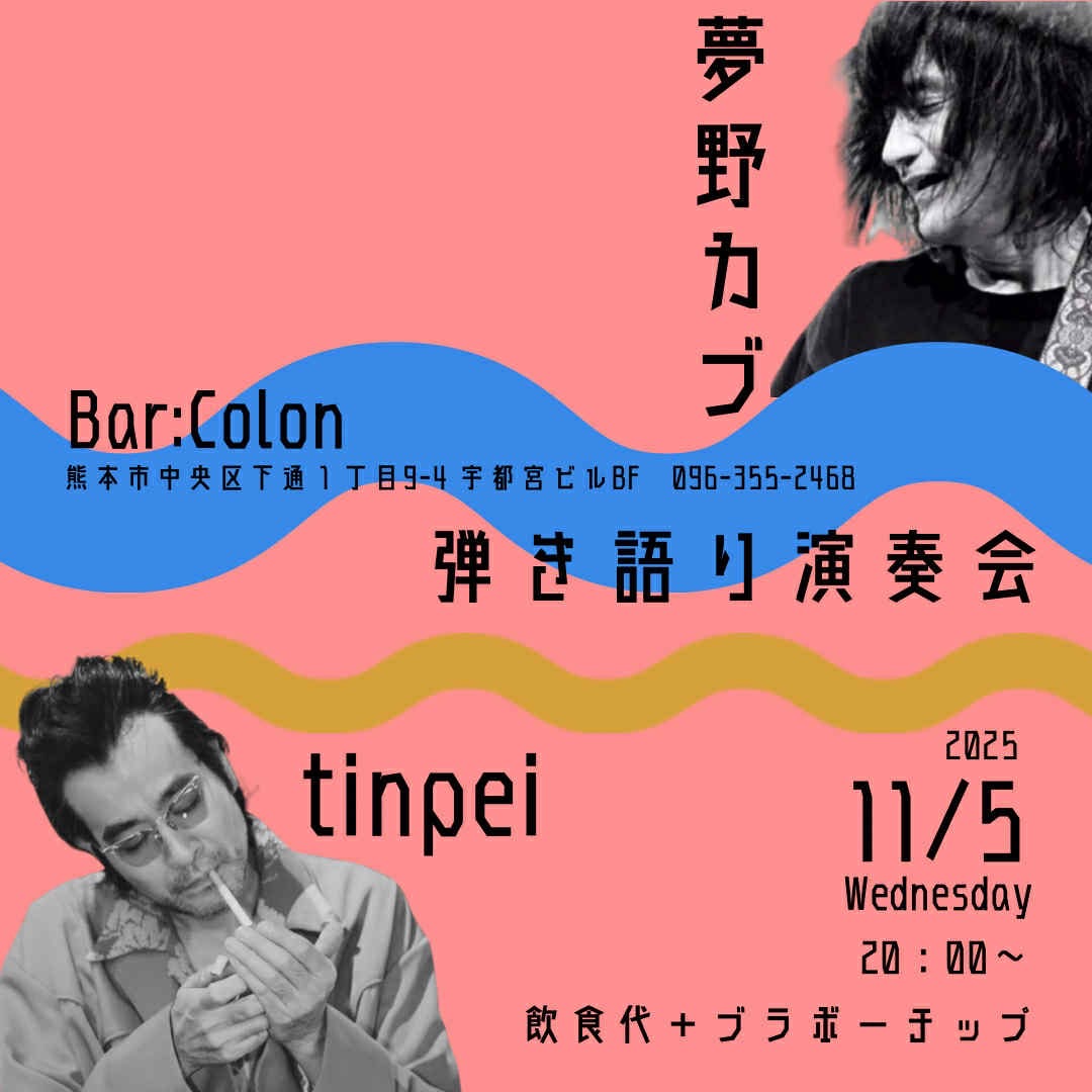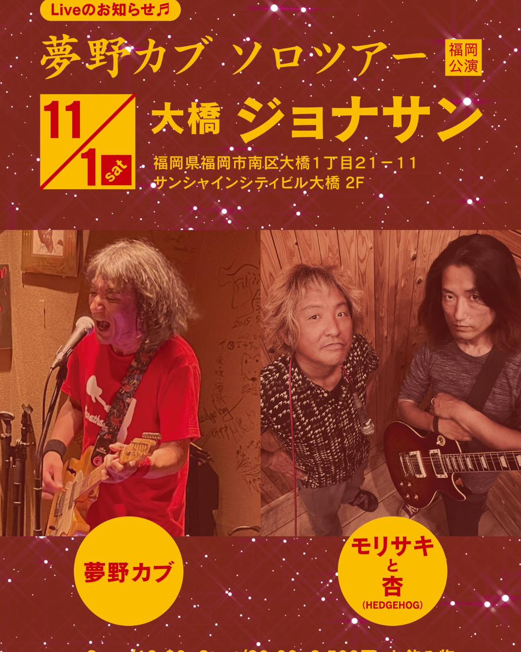 夢野カブ バラッドショット OPEN 19:00 START 19:30 チャージ: 前売 3,000円 +1drink 当日 3,500円 +1drink