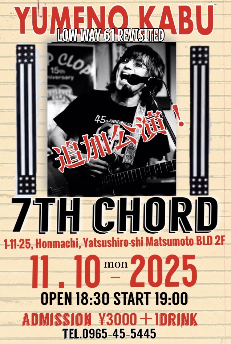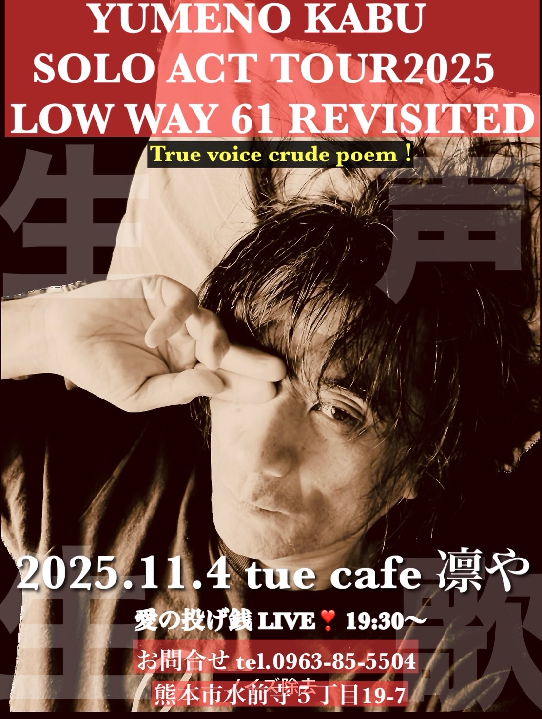 夢野カブ ナカムラ♠︎ OPEN 19:00 START 19:30 チャージ: 前売 2,500円 +1drink 当日 3,000円 +1drink
