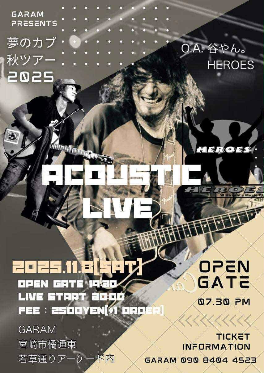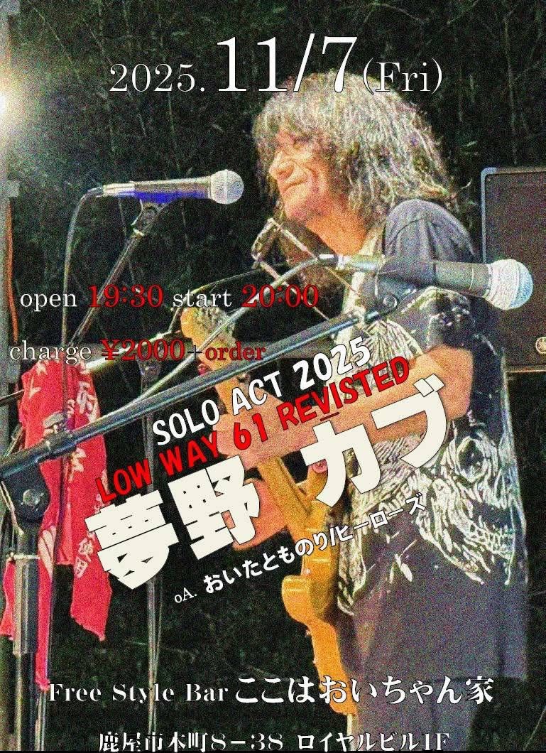 夢野カブ O.A. 老田智教 ヒーローズ OPEN 19:30 START 20:00 チャージ:2,000円 +order