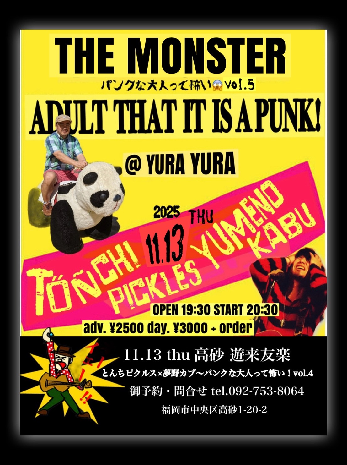 夢野カブ とんちピクルス OPEN 19:30 START 20:30 チャージ: 前売 2,500円 +order 当日 3,000円 +order