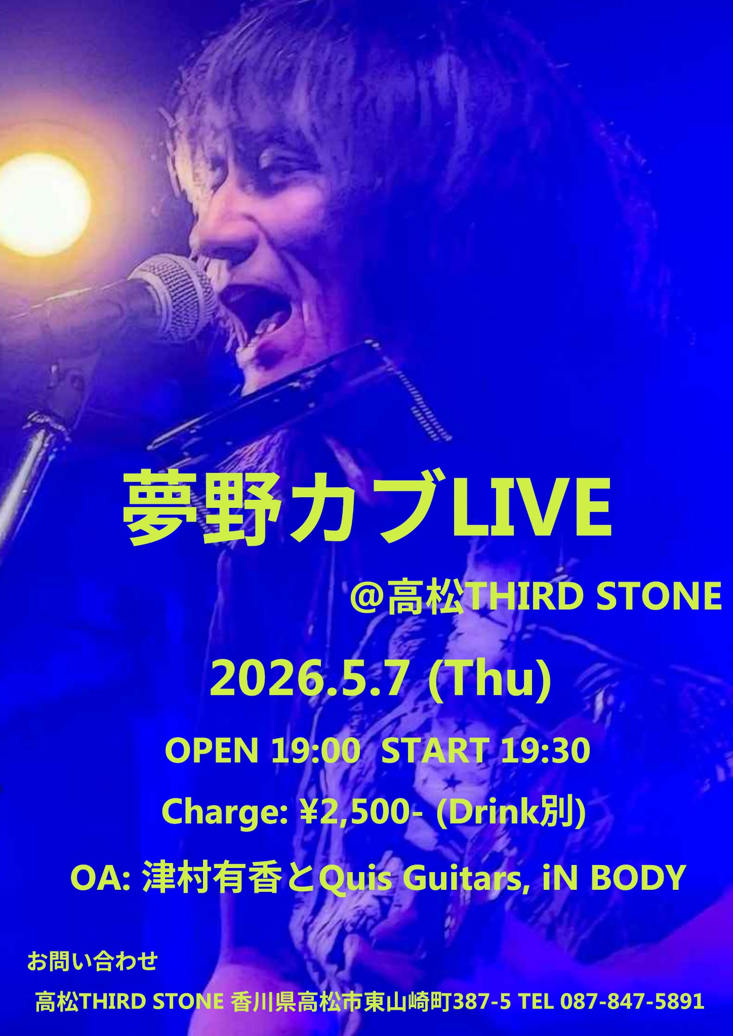 夢野カブ w/津村有香&Quiz Guitars iNBody O.A. OPEN 19:00 START 19:30 2,500円 +1drink