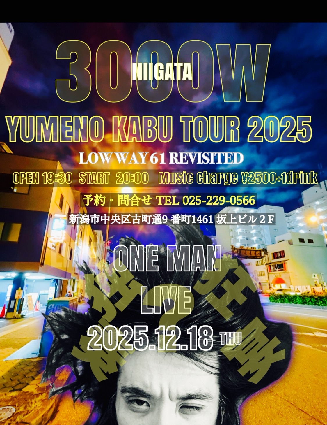 夢野カブ OPEN 19:30 START 20:00 チャージ:2,500円 +1drink