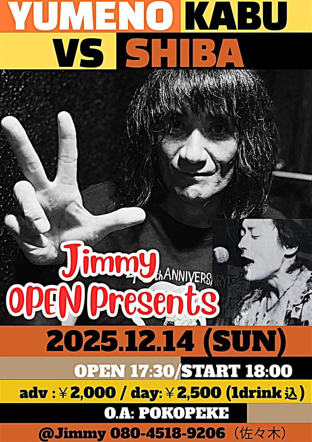 夢野カブ SHIBA O.A. POKOPEKE OPEN 17:30 START 18:00 チャージ: 前売 2,000円 (1drink込) 当日 2,500円(1drink込)